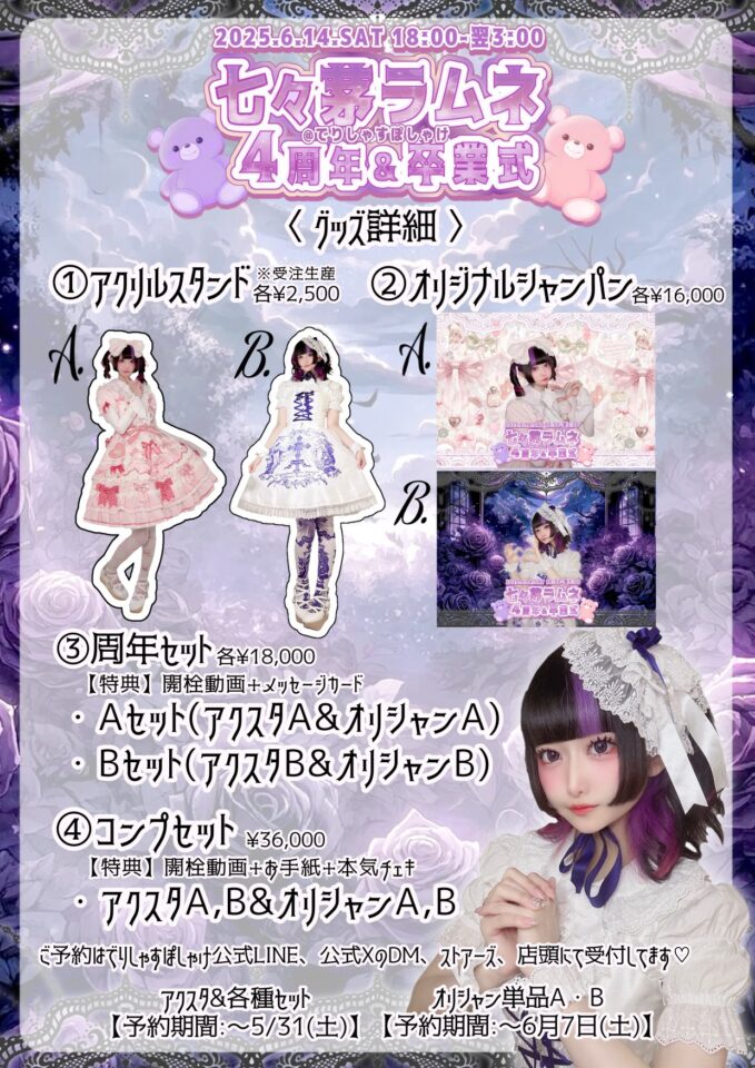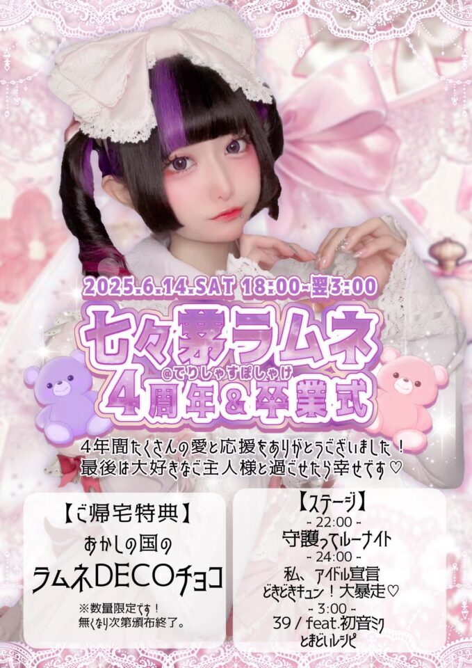 ♡ 七々茅ラムネ4周年&卒業式 ♡ 2025/6/14(土) 18時~翌3時
