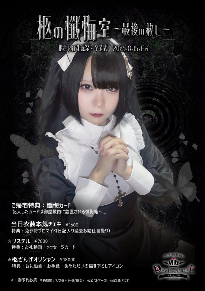 【 イベント告知 】 2025.8.15.金 ✝︎ 20-2時 柩の懺悔室~最後の赦し~ / 柩ざんげ生誕祭・卒業式