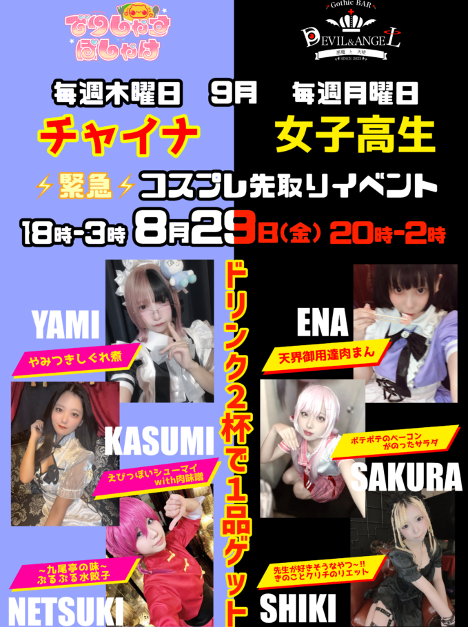 イベント 8月の木曜日は「学園フェア」制服コスプレ@でりぽけ